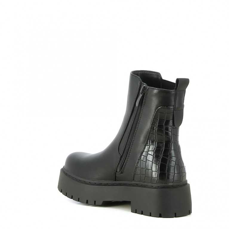 Bottine avec effet croco sur l'arrière et zip pour faciliter le passage du pied.