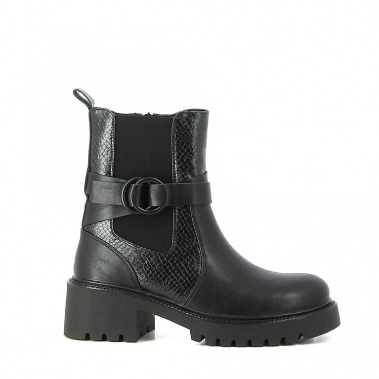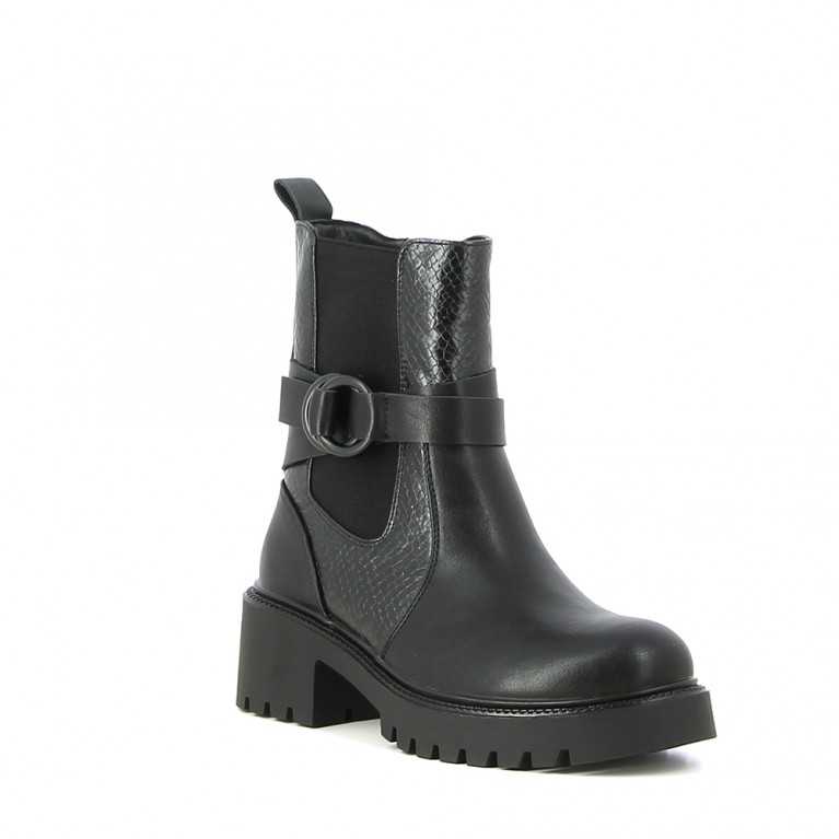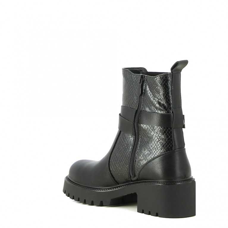 Boots à talon avec effet serpent et zip pour faciliter le passage du pied.