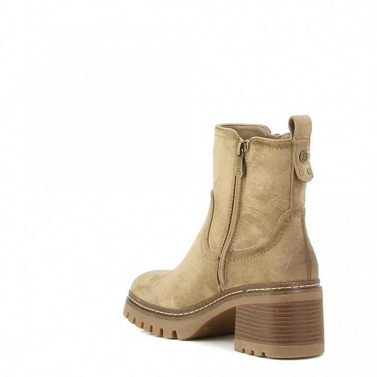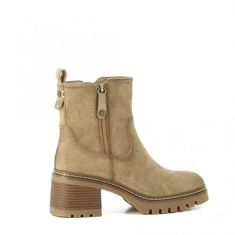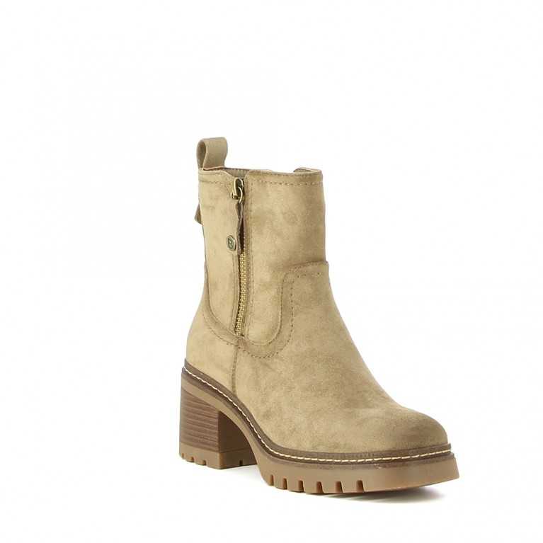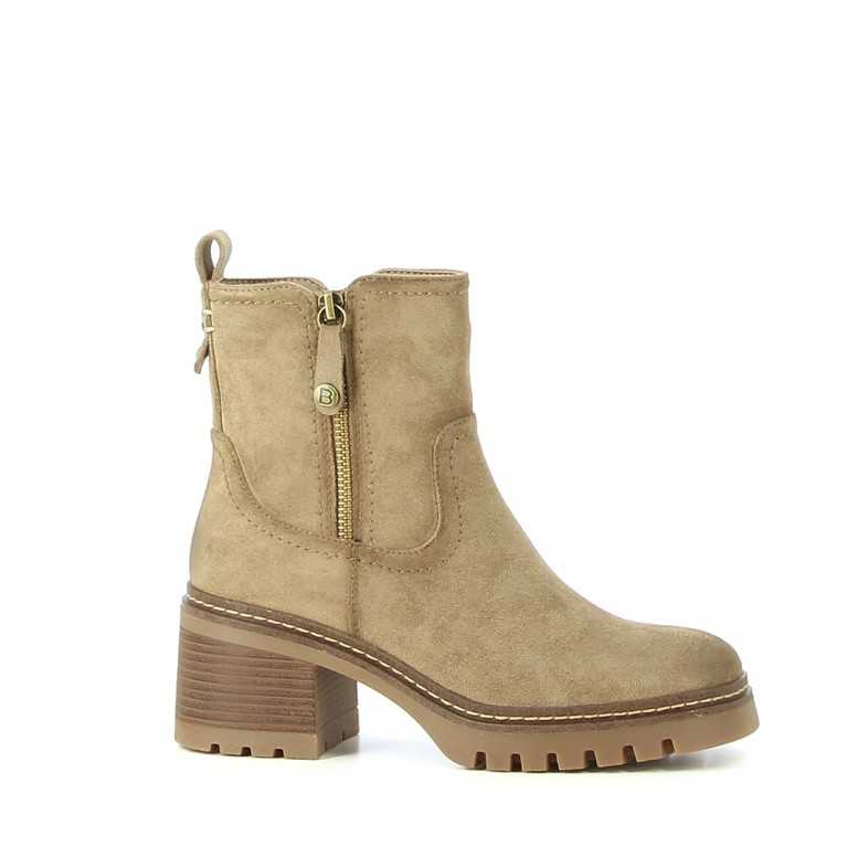 Bottine suédée à talon avec zip pour faciliter le passage du pied.