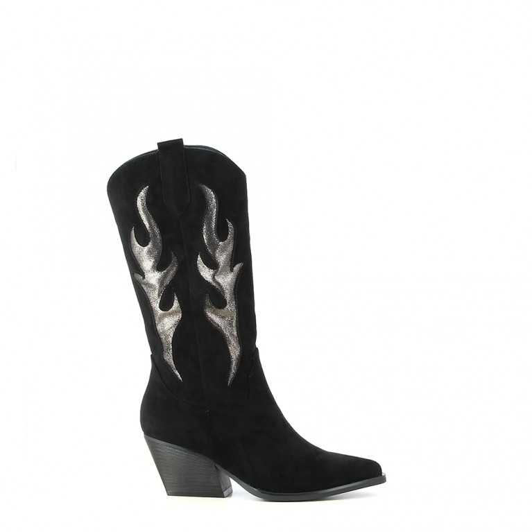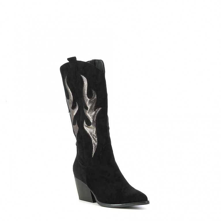 Santiag suédée avec zip pour faciliter le passage du pied.