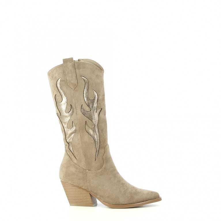 Santiag suédée avec zip pour faciliter le passage du pied.