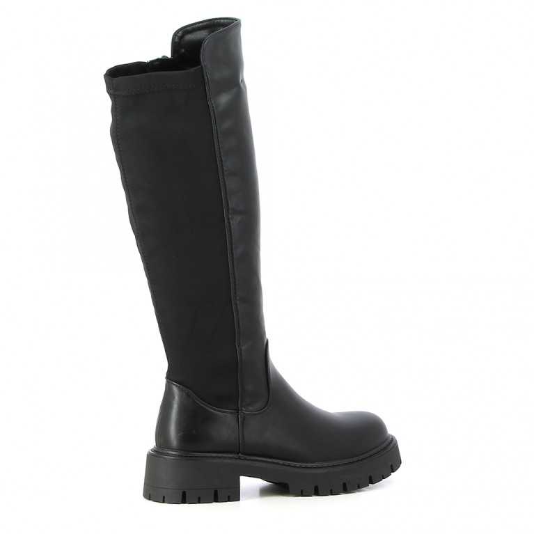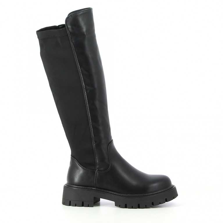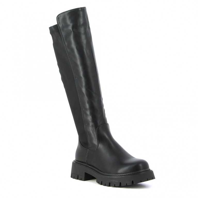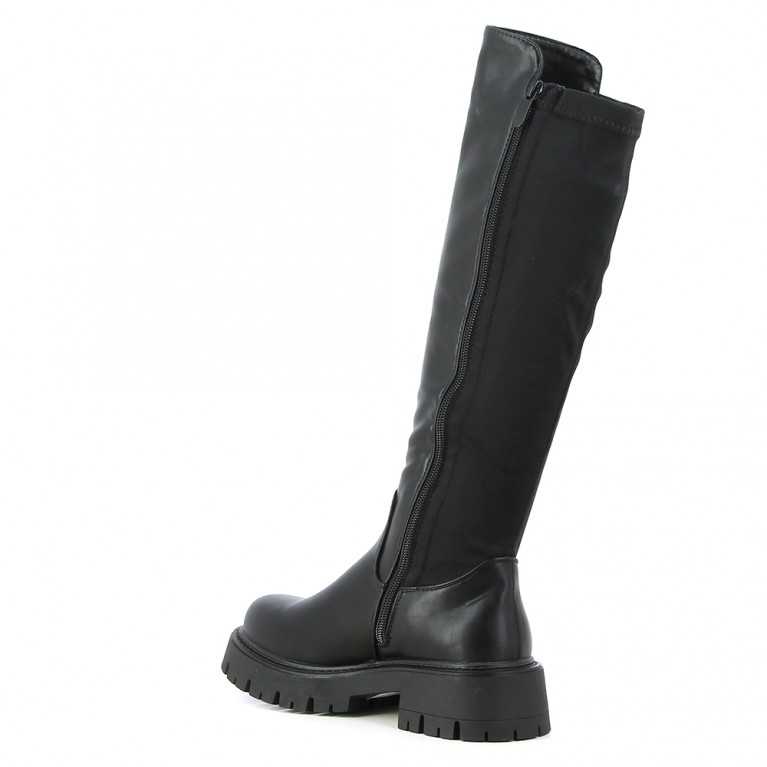 Botte en simili cuir avec élastique et zip pour faciliter le passage du pied.