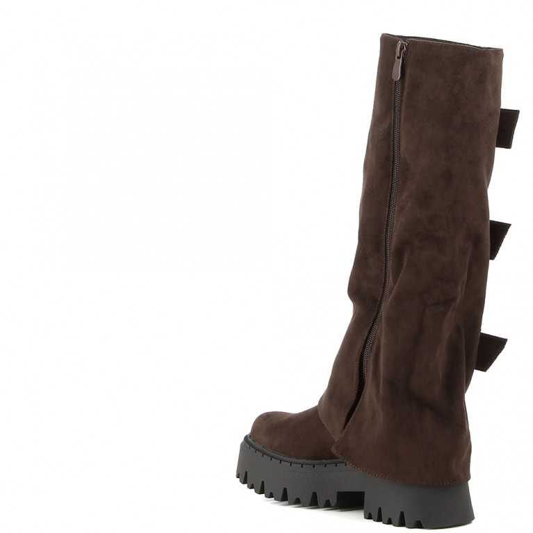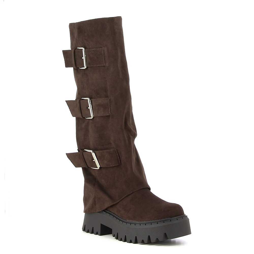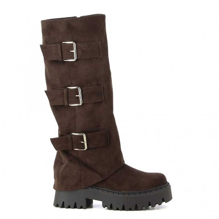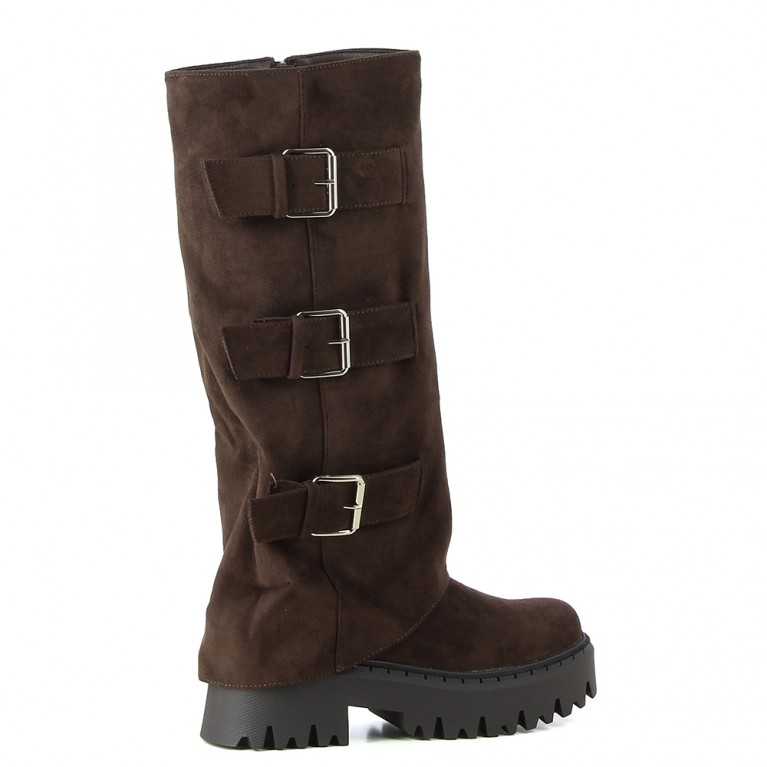 Botte suédée avec revers et boucles et zip pour faciliter le passage du pied.