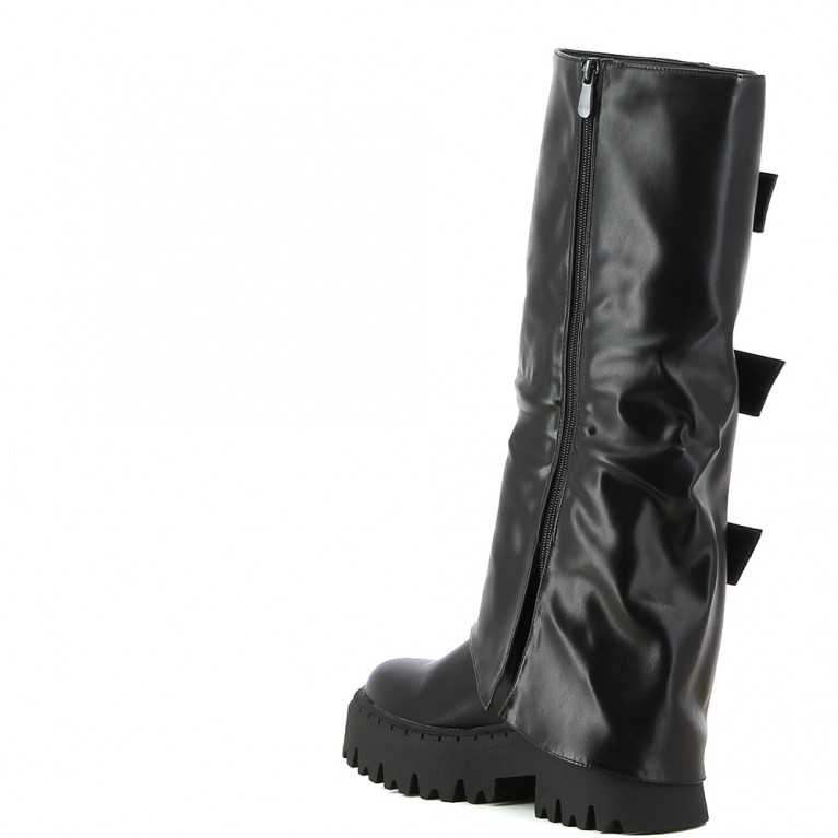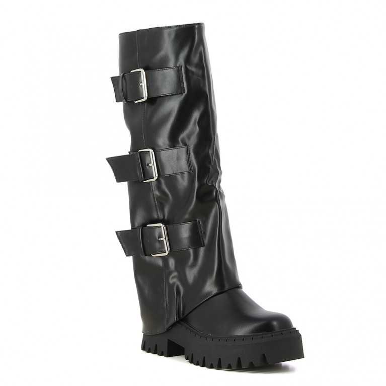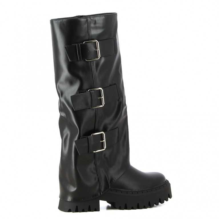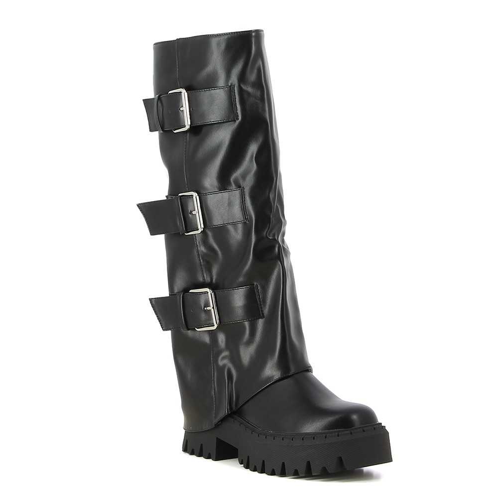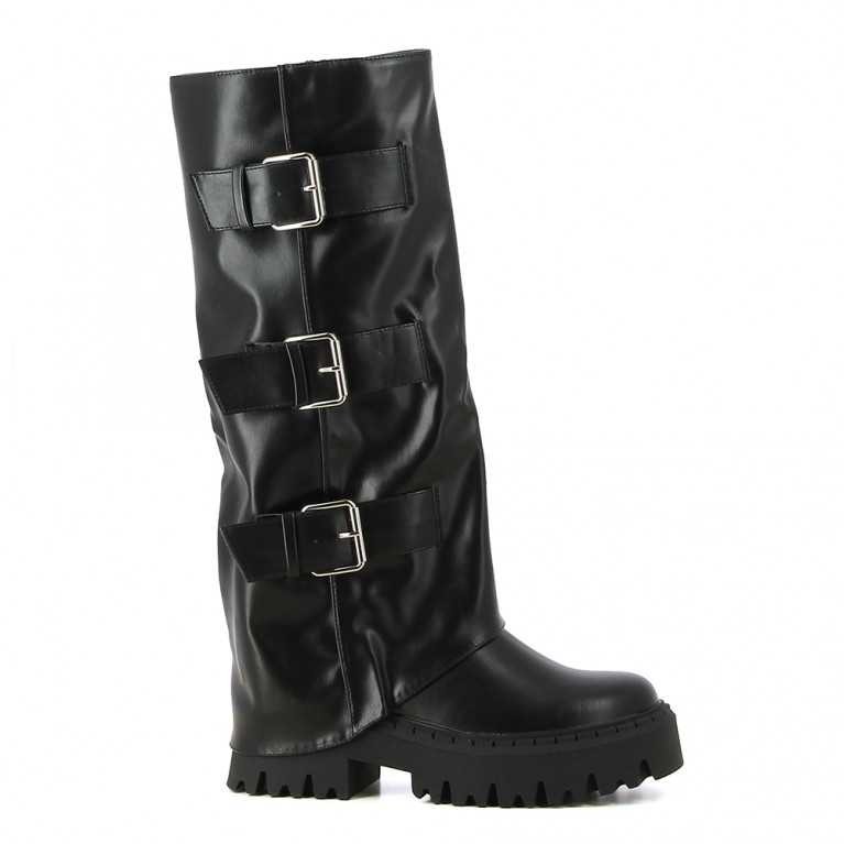 Botte en simili avec revers et boucles et zip pour faciliter le passage du pied.