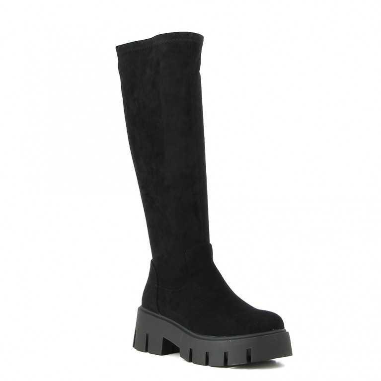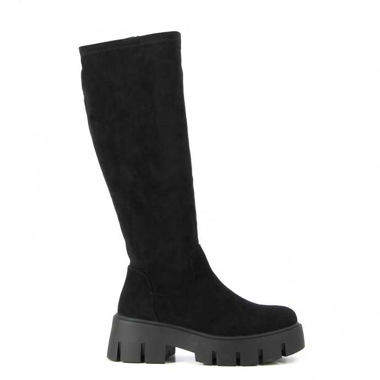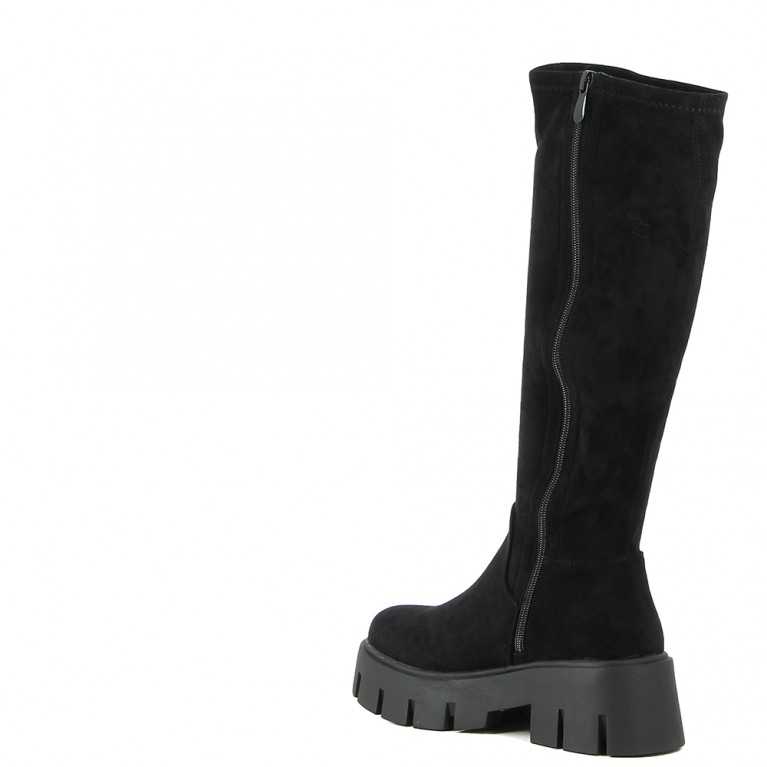 Botte suédée avec semelle crantée et zip pour faciliter le passage du pied.