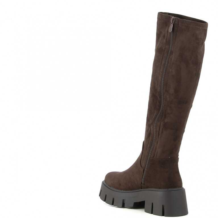Botte suédée avec semelle crantée et zip pour faciliter le passage du pied.