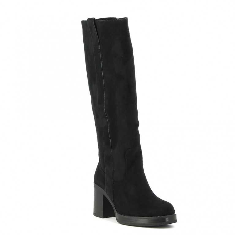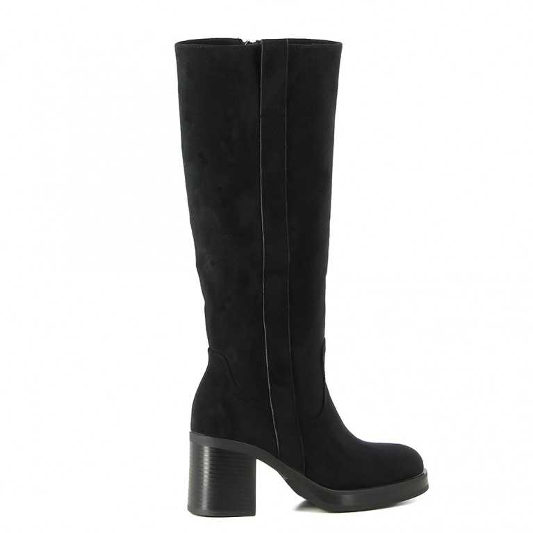 Botte suédée à talon avec zip pour faciliter le passage du pied.