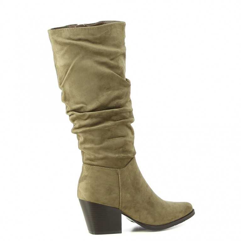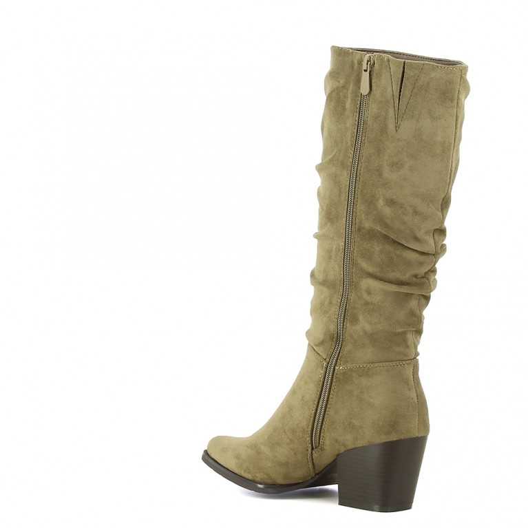 Santiag suédée plissée avec zip pour faciliter le passage du pied.