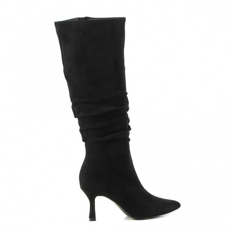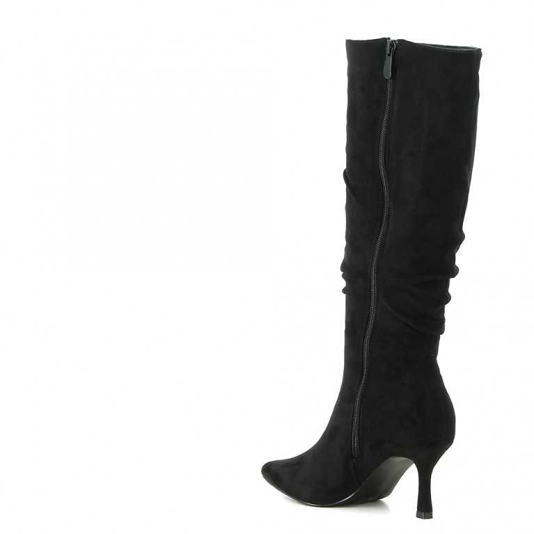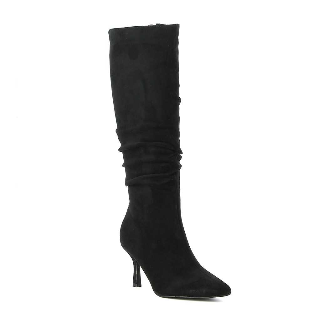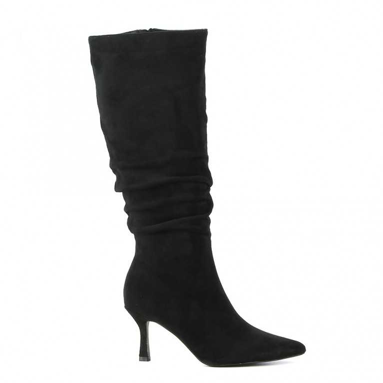 Botte suédée à talon aiguille et zip pour faciliter le passage du pied.