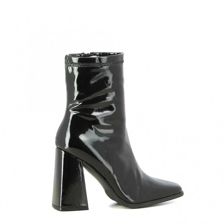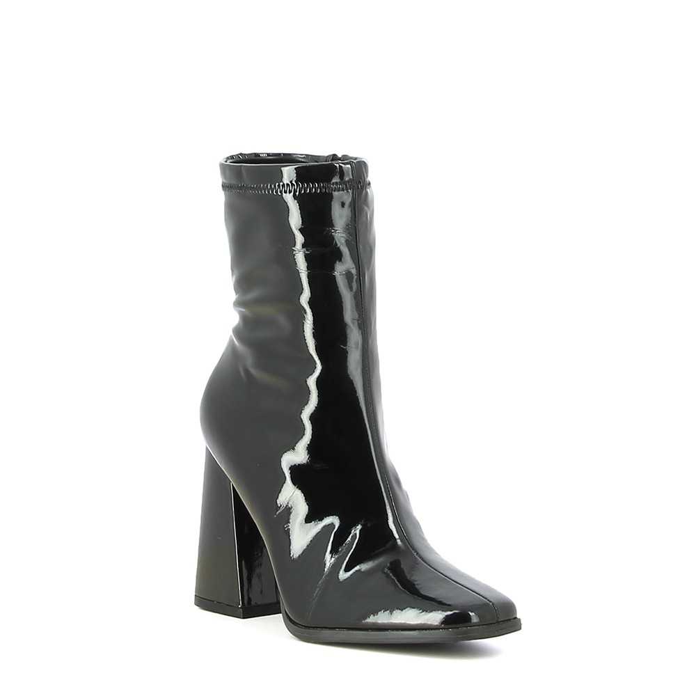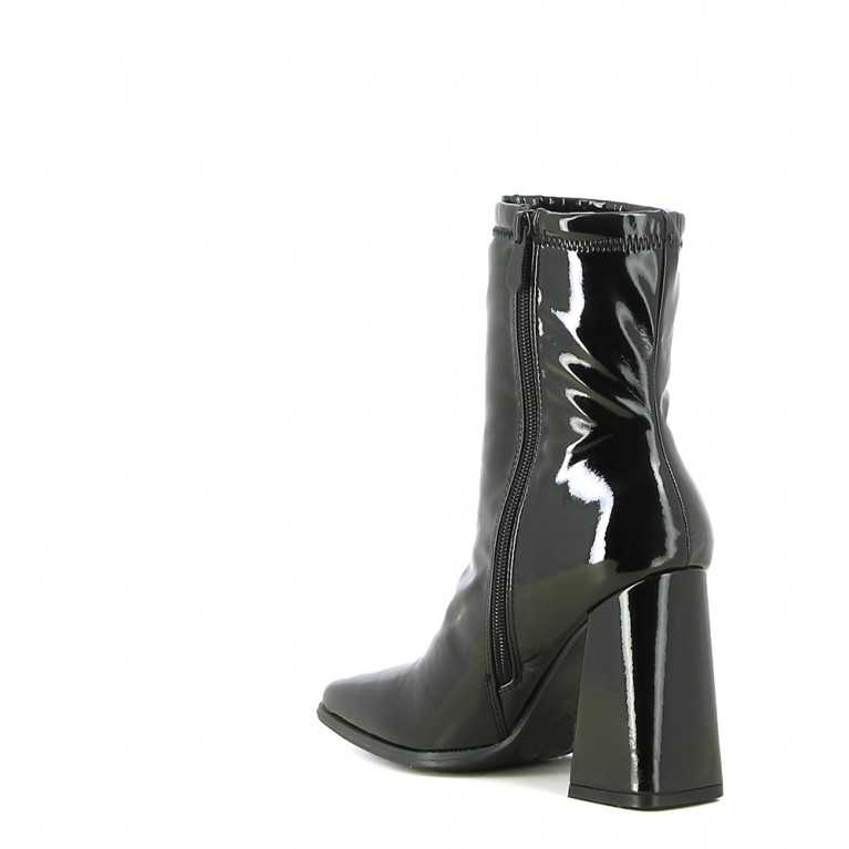 Bottine verie à talon avec bout carré et zip pour faciliter le passage du pied.