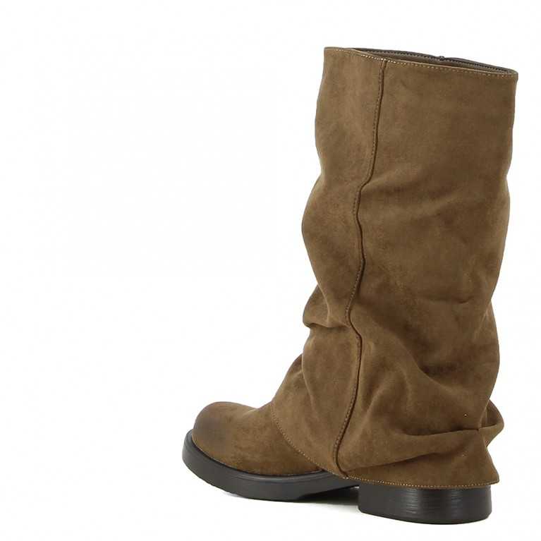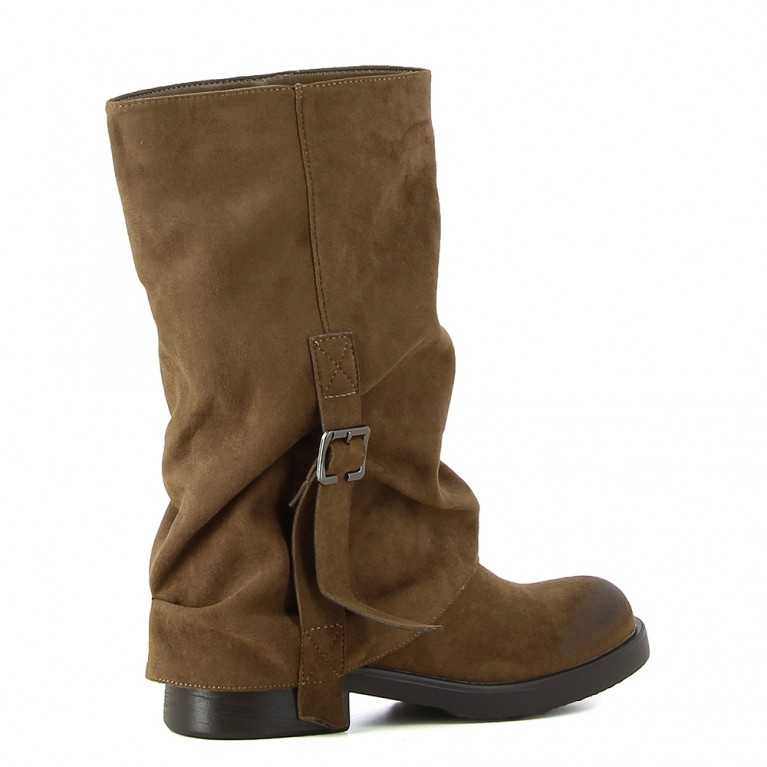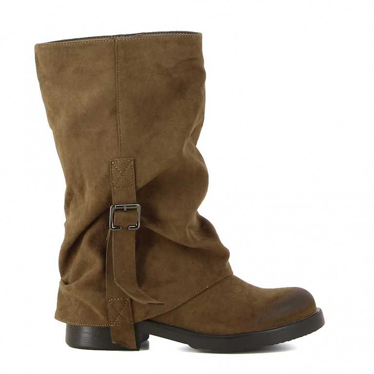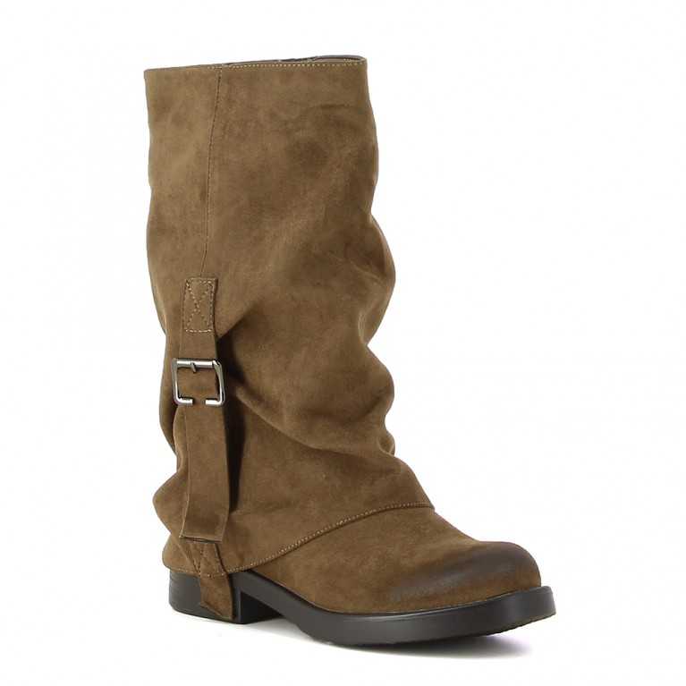 Botte suédée avec revers et boucle et zip pour faciliter le passage du pied.