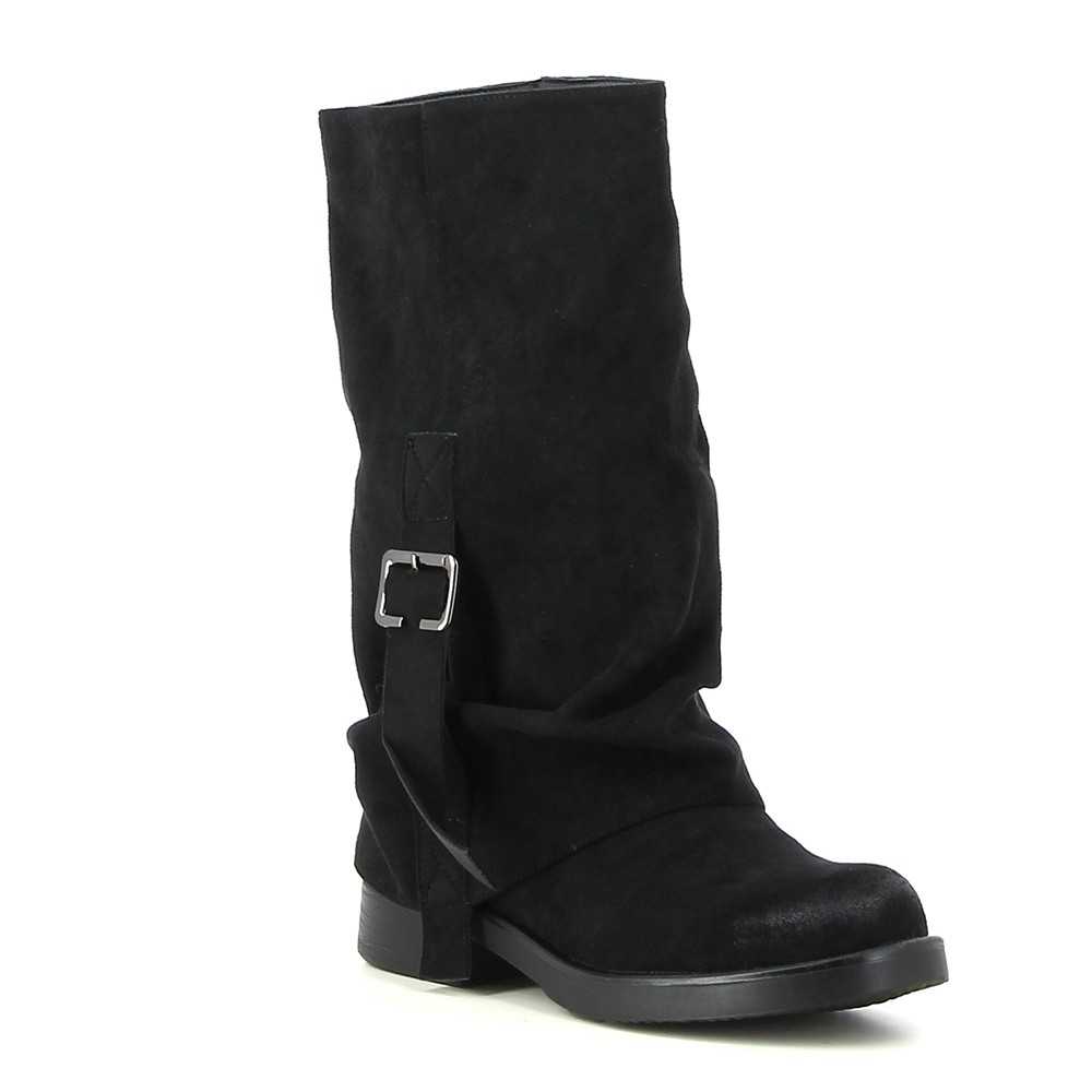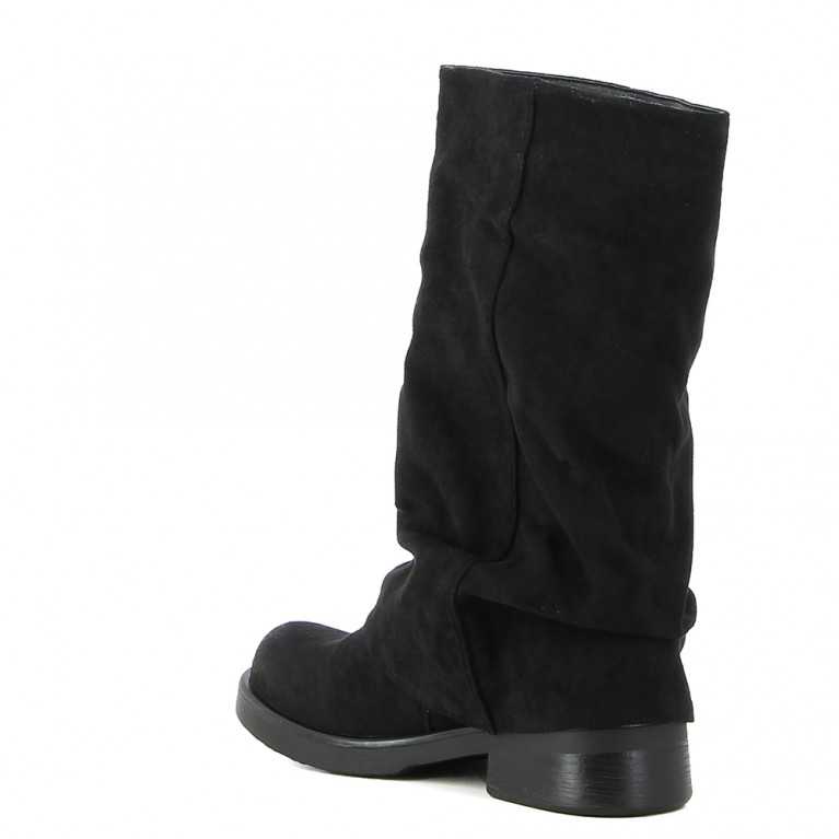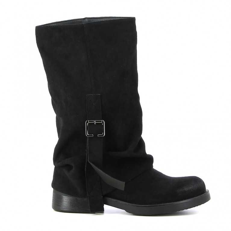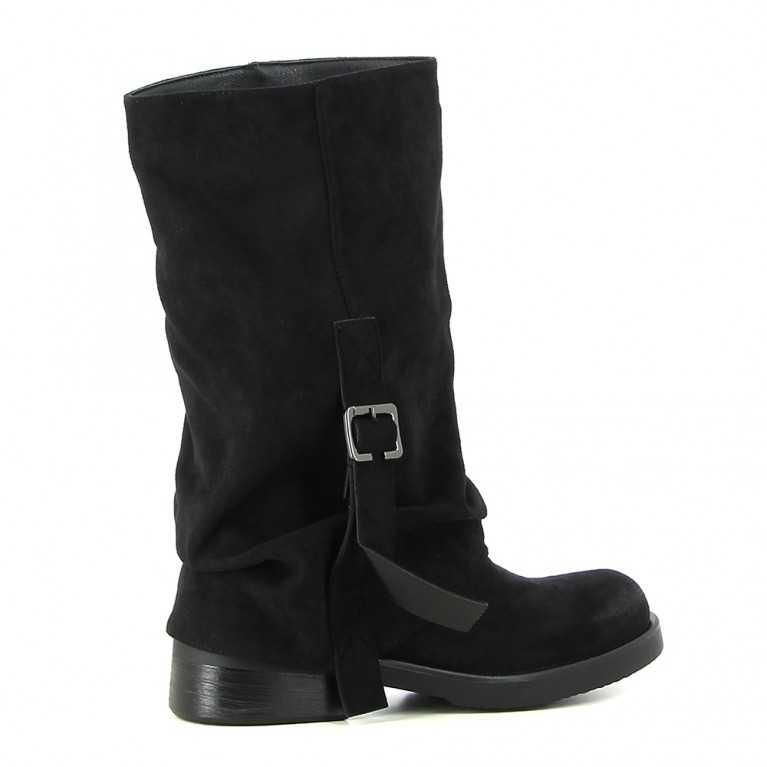 Botte suédée avec revers et boucle et zip pour faciliter le passage du pied.