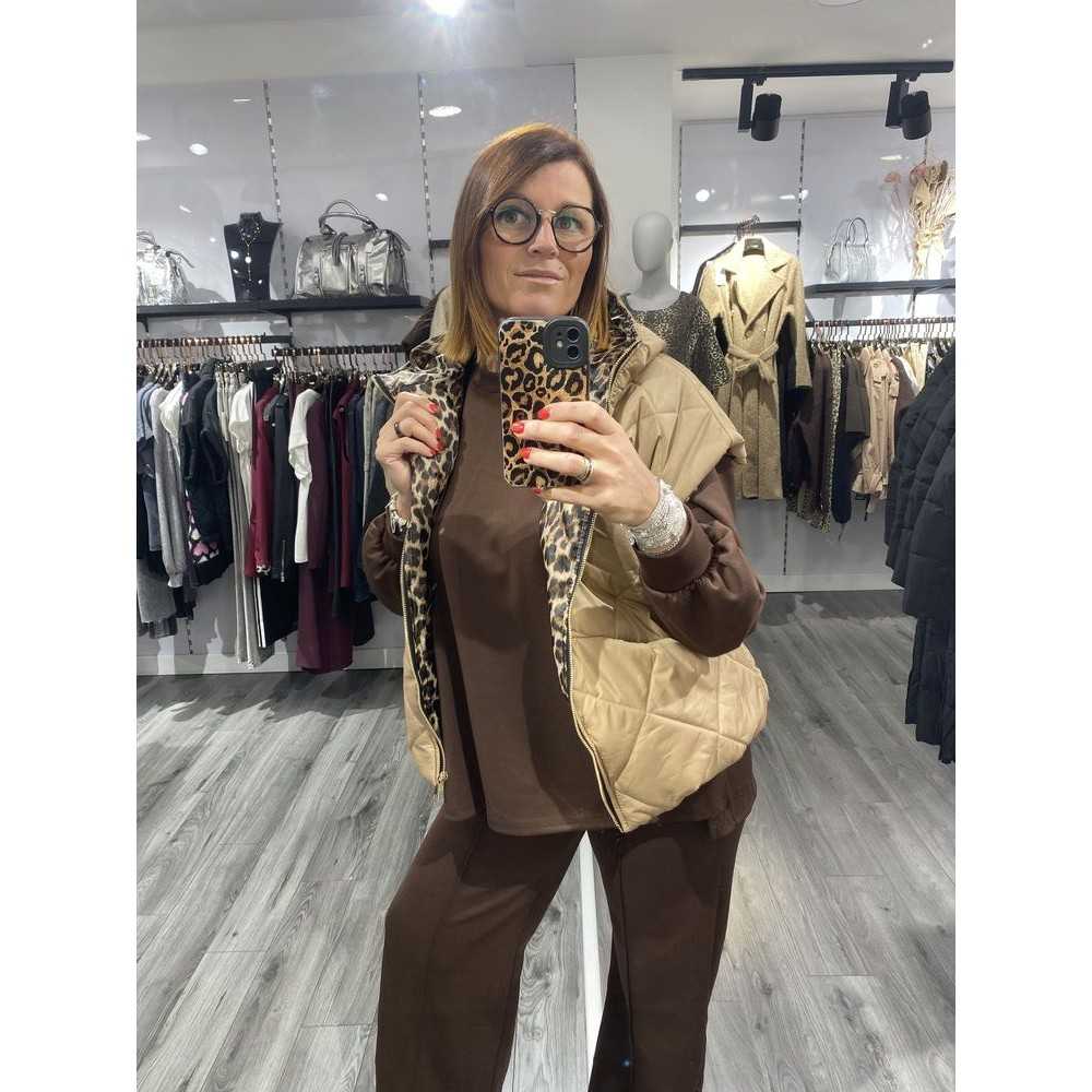 Doudoune sans manches intérieur léopard