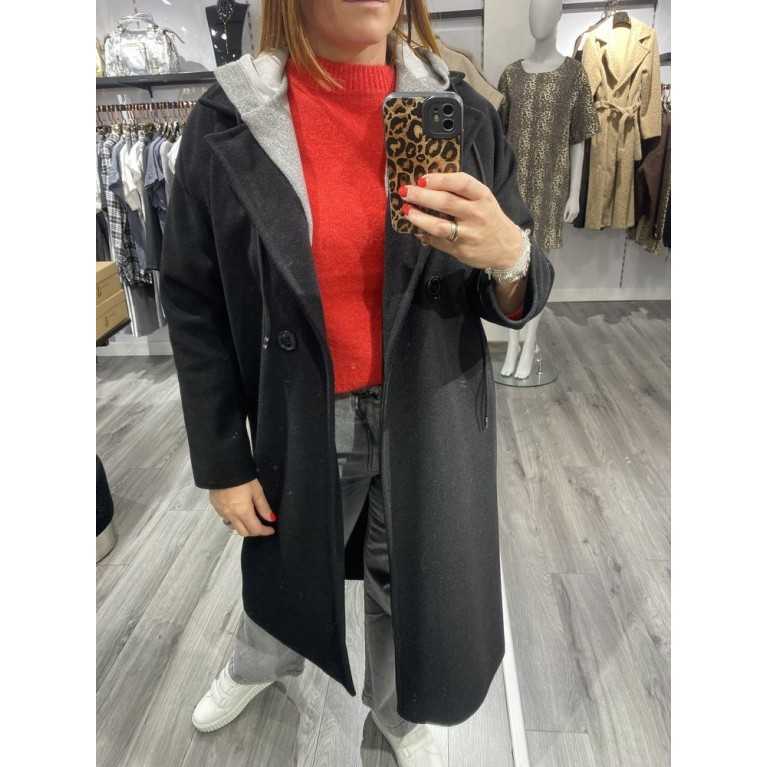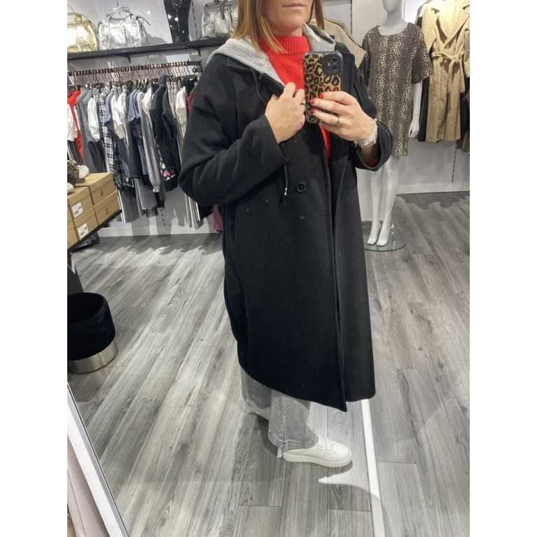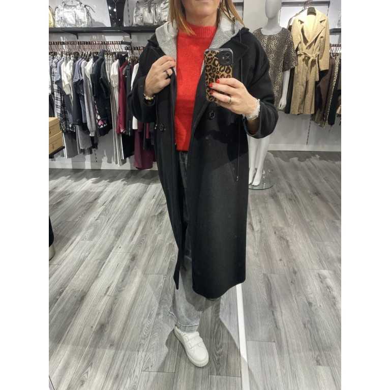 Trench noir à capuche style sweat