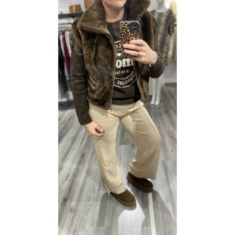 Pantalon tricot beige