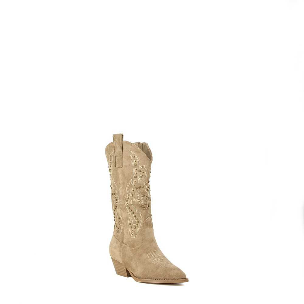 Santiag suédée avec clous et zip pour faciliter le passage du pied.