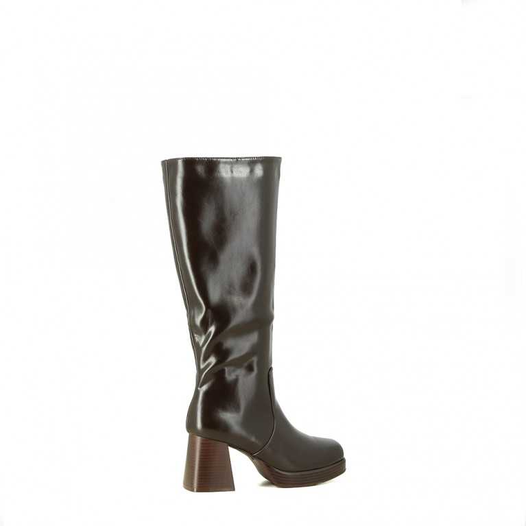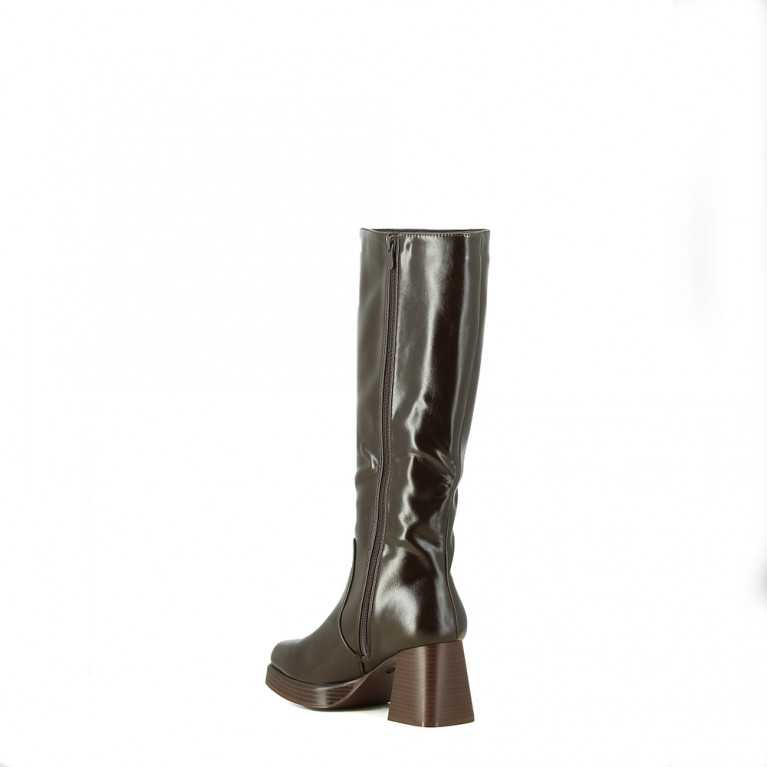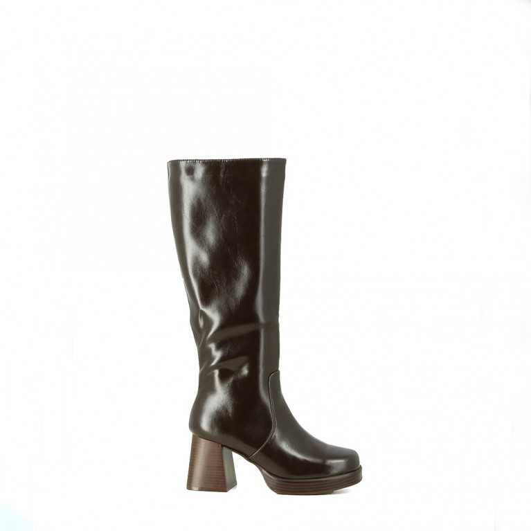 Botte vernie à talon carré avec zip pour faciliter le passage du pied.