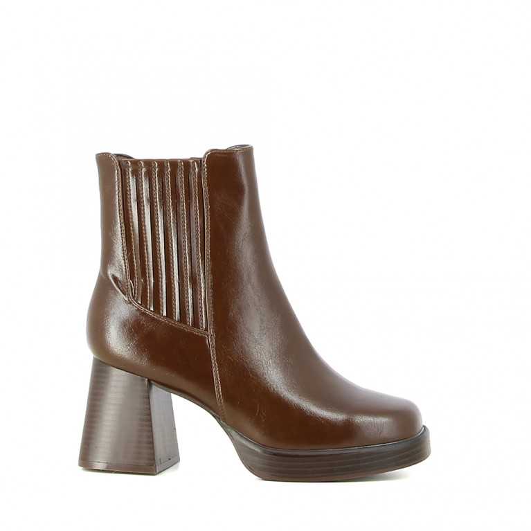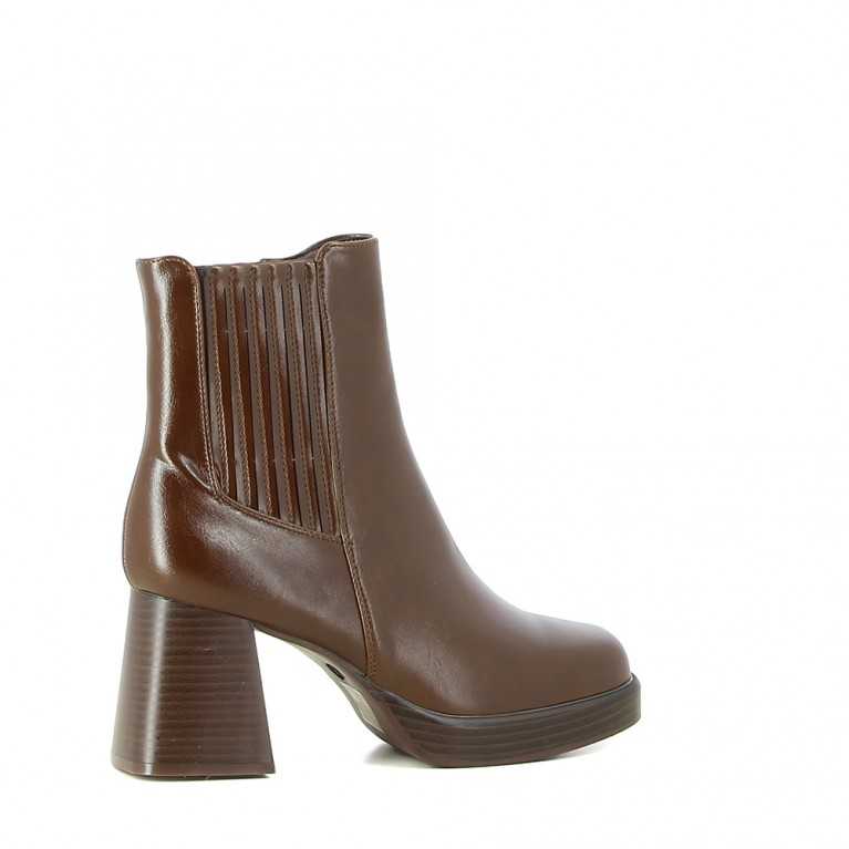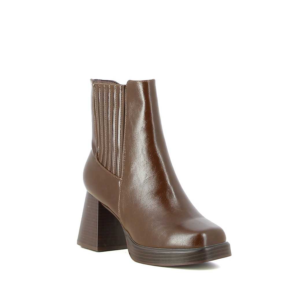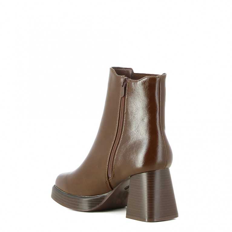 Bottine vernie à talon carré avec zip pour faciliter le passage du pied.