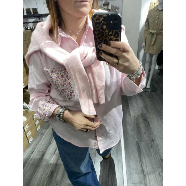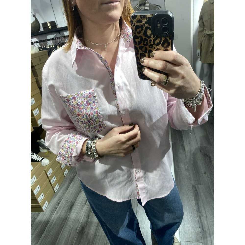 Chemise rose avec détails fleurs
