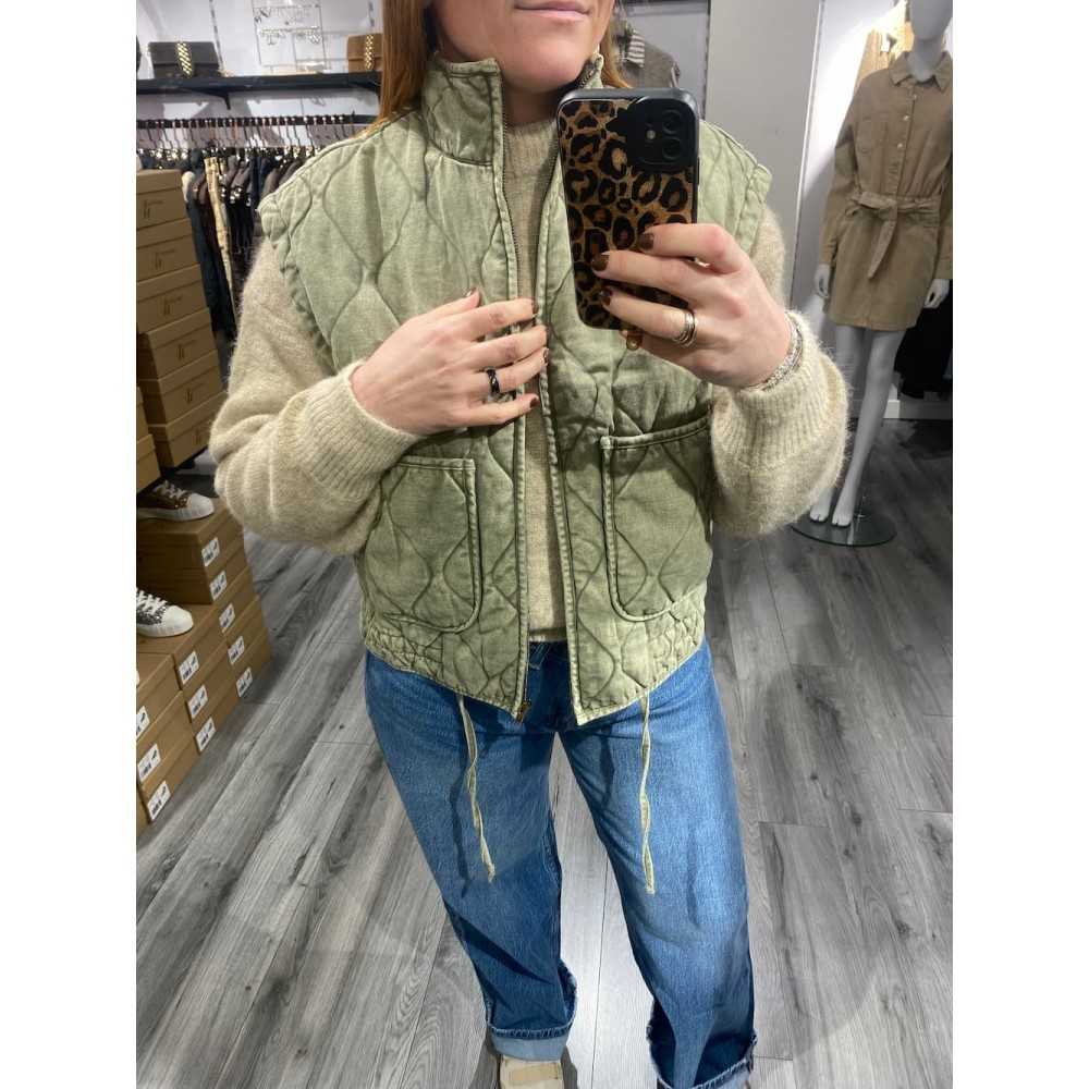Veste sans manches effet jean kaki